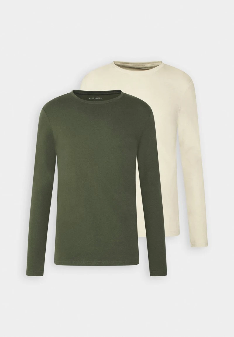 Pier One 2 PACK – Langarmshirt – Off-white/dark Green